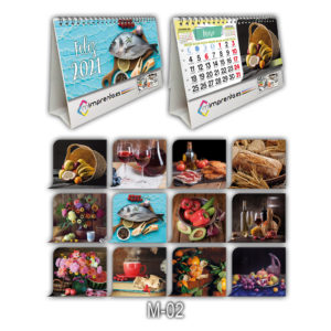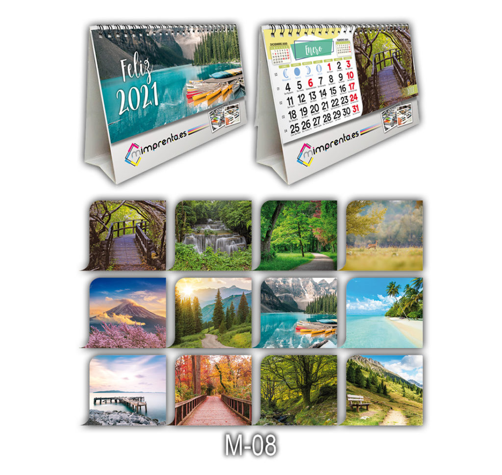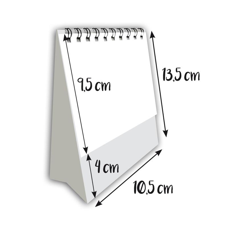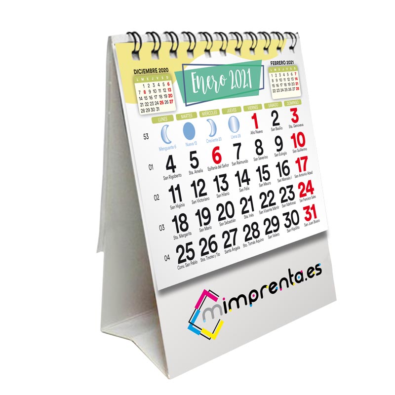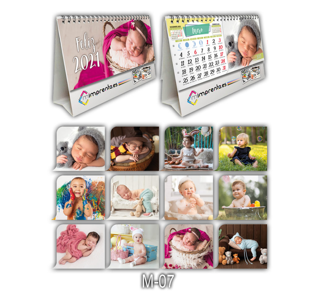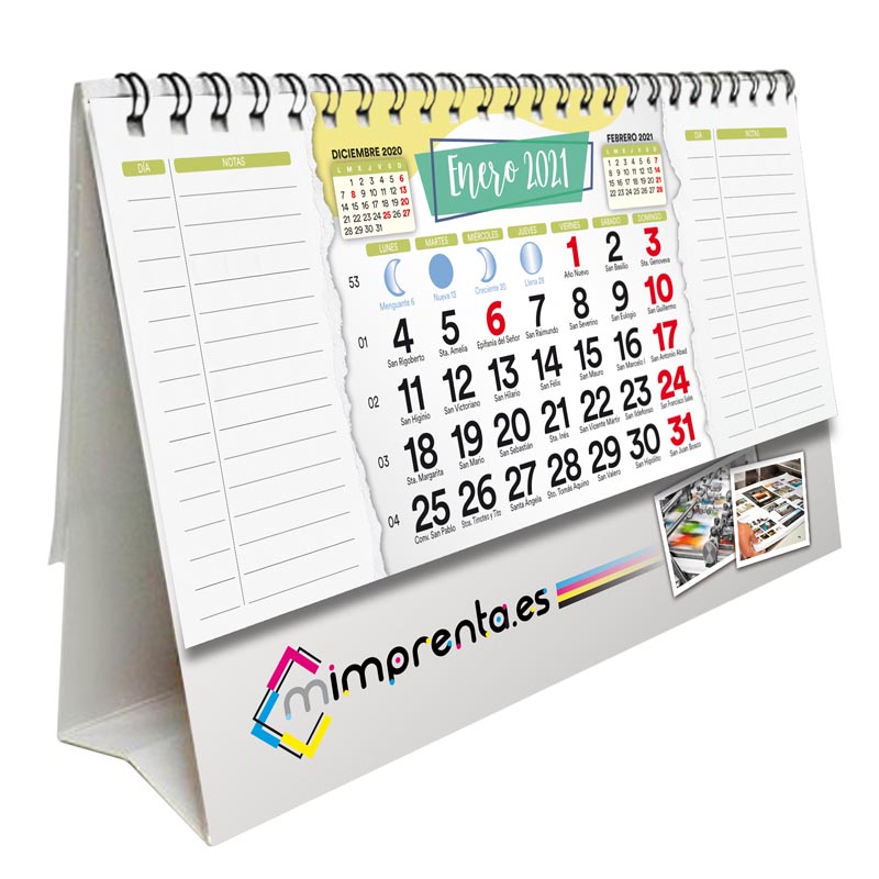 Compuesto por peana de folding blanco y 7 hojas (portada +12 meses) impresas a doble cara y a todo