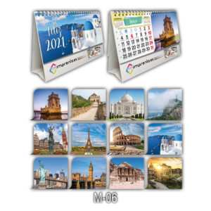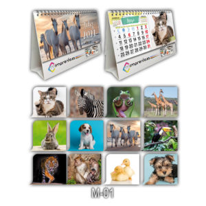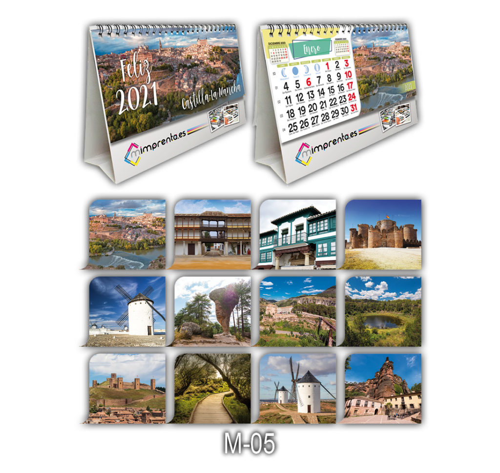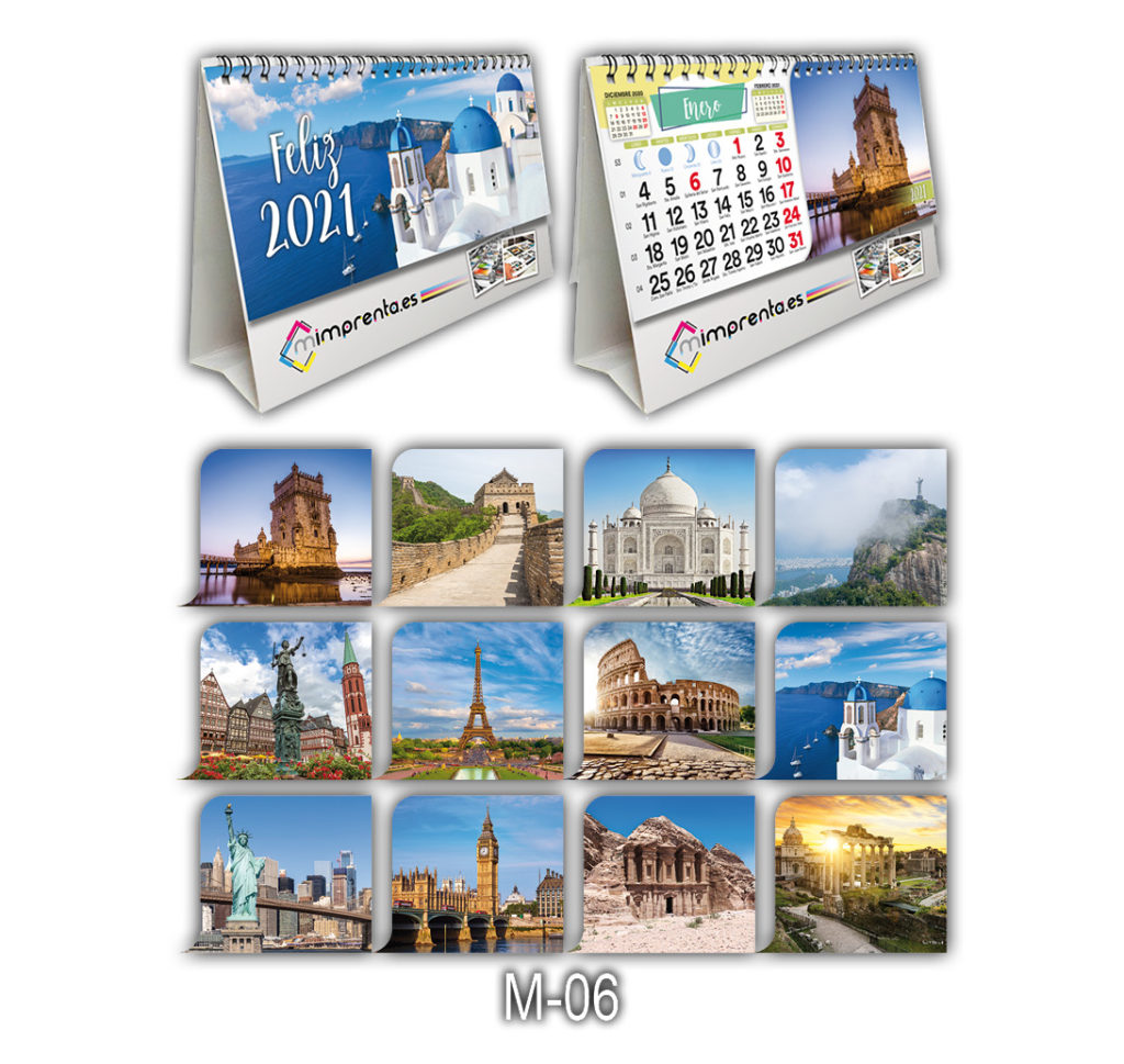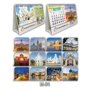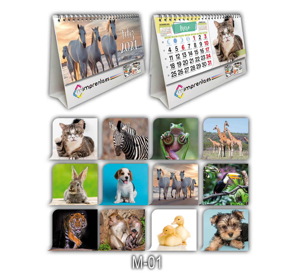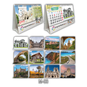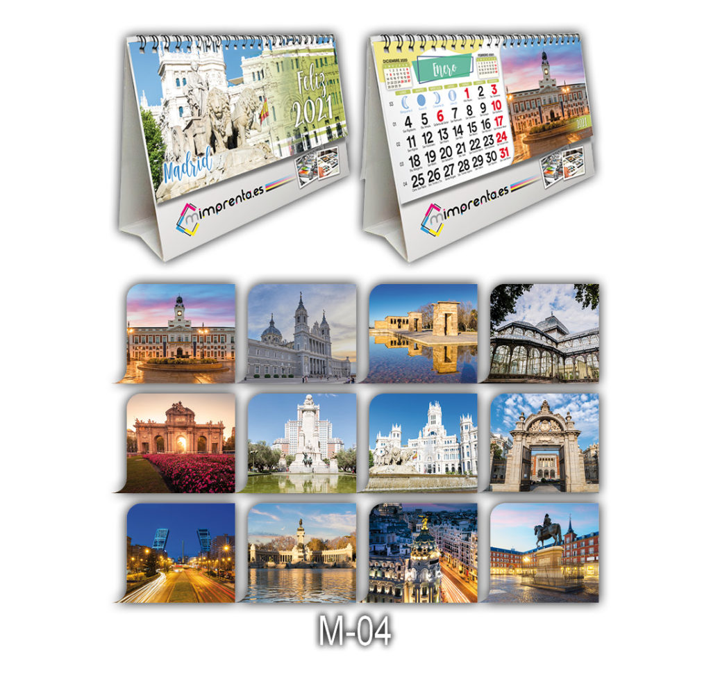 Compuesto por peana de folding blanco y 7 hojas (portada +12 meses) impresas a doble cara y a todo