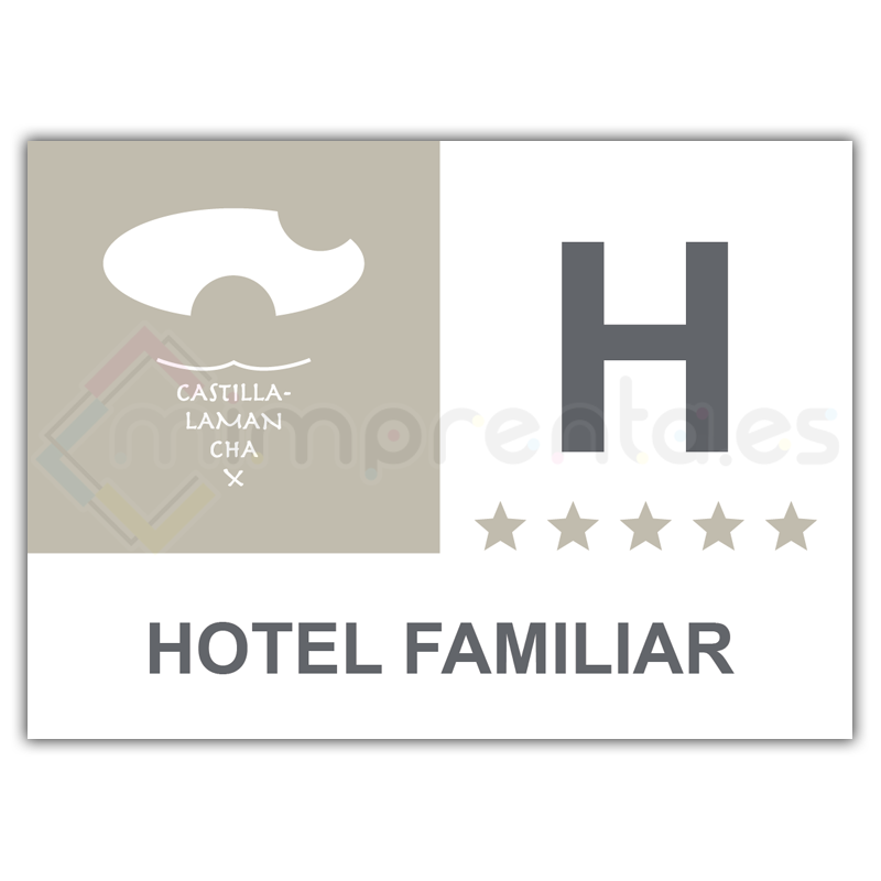 Placa fabricada según el Decreto 253/2023, de 12 de Septiembre, de ordenación de los establecimientos de alojamiento turístico hotelero en Castilla-La Mancha.