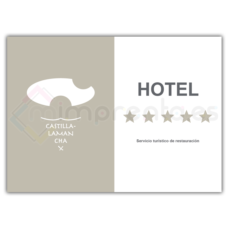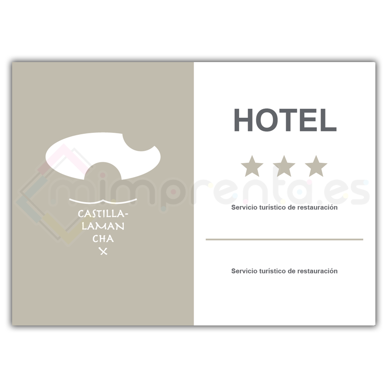 Placa fabricada según el Decreto 253/2023, de 12 de Septiembre, de ordenación de los establecimientos de alojamiento turístico hotelero en Castilla-La Mancha.